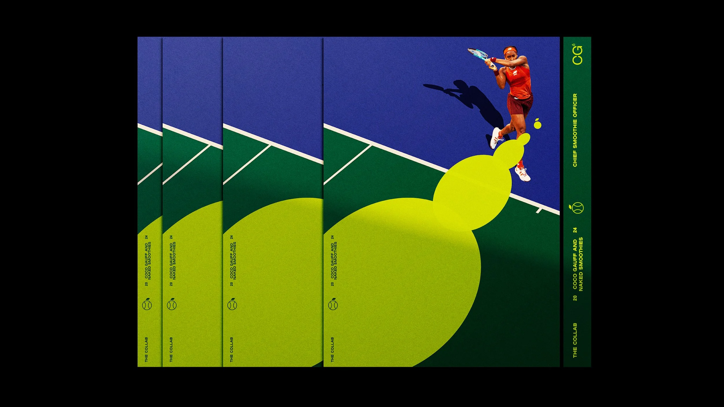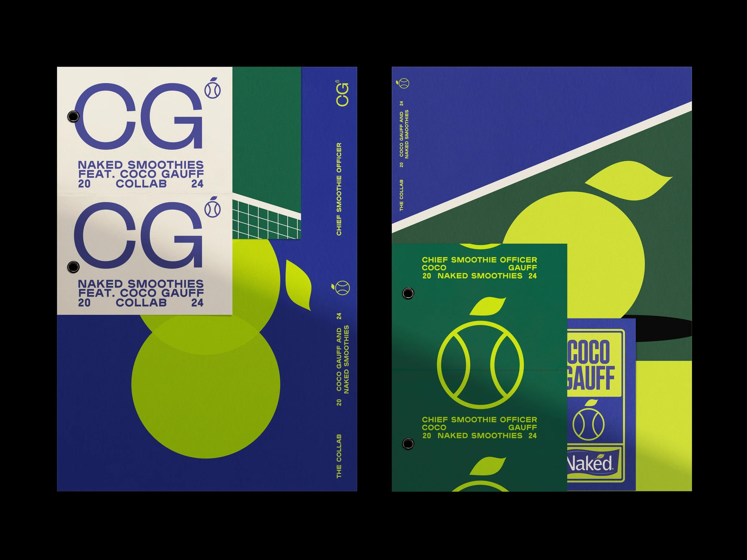 Mullenlowe design studio was invited to craft a dynamic visual identity for the partnership between tennis sensation coco gauff and naked smoothies, merging athletic energy with the refreshing essence of natural fruits. at its core, the design system revolves around the simplicity and universality of the circle—a shape inspired by the tennis ball. This motif transforms into bold, colorful fruit compositions, reflecting the vitality of naked smoothies and coco’s dynamic tennis playin style. The identity blends playfulness with elegance, creating a cohesive yet flexible system that celebrates the synergy of health, sport, and lifestyle, resonating across packaging, digital experiences, and campaign visuals.